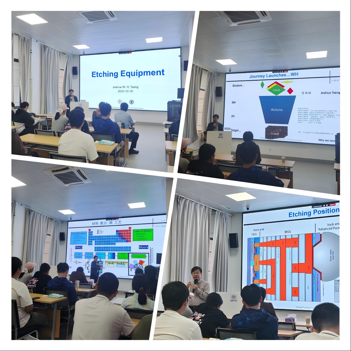 為強(qiáng)化半導(dǎo)體設(shè)備領(lǐng)域人才技術(shù)儲(chǔ)備,打通高校理論教學(xué)與產(chǎn)業(yè)實(shí)踐應(yīng)用的銜接路徑,10月18日下午,我校聯(lián)合達(dá)拉斯浸會(huì)大學(xué)(DBU)共同開(kāi)展的第二篇章“半導(dǎo)體設(shè)備”系列課程第二講——“刻蝕設(shè)備”開(kāi)講。本次培訓(xùn)特邀半導(dǎo)體材料與設(shè)備領(lǐng)域資深專(zhuān)家、國(guó)立大學(xué)材料科學(xué)與工程學(xué)博士曾偉雄主講,采用“理論拆解+技術(shù)溯源+趨勢(shì)展望”的授課模式,面向我校微專(zhuān)業(yè)學(xué)生、DBU大學(xué)研究生及感興趣慕名而來(lái)的學(xué)生們,通過(guò)線下與線上同步授課的形式,吸引近百人參與學(xué)習(xí)。課程由數(shù)理學(xué)院副院長(zhǎng)(主持工作)林佳主持。