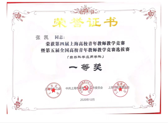近三年他先后榮獲“上海市教學(xué)能手”、第四屆上海市高校青年教師教學(xué)競(jìng)賽一等獎(jiǎng)(自然科學(xué)應(yīng)用學(xué)科),第二屆上海市高校教師教學(xué)創(chuàng)新大賽一等獎(jiǎng)(地方高校副高組),上海電力大學(xué)第九屆青年教師教學(xué)競(jìng)賽一等獎(jiǎng)、上海電力大學(xué)第二屆教師教學(xué)創(chuàng)新大賽特等獎(jiǎng)、上海電力大學(xué)第四屆課程思政示范展示活動(dòng)特等獎(jiǎng)。
