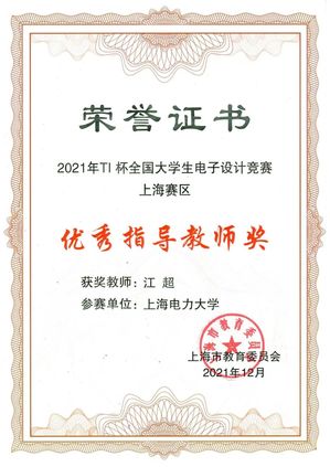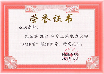 *曾獲上海電力大學(xué)校優(yōu)秀班主任、光力科技獎教金、“雙師型”教師稱號、“我心目中的好老師 ”提名獎、“上海市青年五四獎?wù)聜€人”等榮譽(yù)。