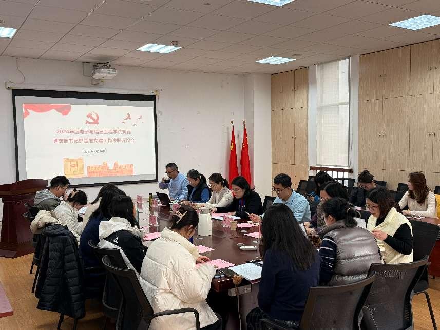 為持續(xù)深入學(xué)習(xí)貫徹黨的二十屆三中全會(huì)精神,切實(shí)提高基層黨建工作質(zhì)量,推進(jìn)黨建和業(yè)務(wù)深度融合,2024年12月30日,電子與信息工程學(xué)院2024年度黨支部書記抓基層黨建工作述職評(píng)議會(huì)在電計(jì)樓B402會(huì)議室舉行。學(xué)院黨政領(lǐng)導(dǎo)班子、黨委委員、各黨支部書記、學(xué)生黨員代表出席會(huì)議,數(shù)理學(xué)院專職組織員魏鈺桐列席會(huì)議,會(huì)議由學(xué)院專職組織員修紹梅主持。