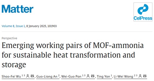 2025年1月8日,我校能源與機械工程學院吳韶飛博士、潘衛(wèi)國教授團隊,與上海交通大學機械與動力工程學院制冷與低溫工程研究所王麗偉教授團隊在Cell姊妹刊Matter上發(fā)表論文,題目為“Emerging working pairs of MOF-ammonia for sustainable heat transformation and storage”。該論文明晰MOF吸附飽和氨的微觀機理,通過計算篩選高穩(wěn)定性氨吸附劑,構(gòu)建基于新型MOF-氨工質(zhì)對的吸附循環(huán),顯著提高極端氣候下的熱能轉(zhuǎn)換與儲存性能。吳韶飛博士為本文第一作者和通訊作者,潘衛(wèi)國教授和王麗偉教授為共同通訊作者。