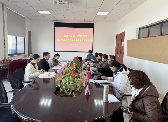 2025年1月9日下午,外國語學院2024年度處級黨員領導干部民主生活會在臨港校區經外樓B401室召開。校黨委副書記、副校長朱克勇,校第四督導組副組長、校紀委(監察專員辦公室)審查調查室主任王云歡,聯絡員王穎玨到會指導。外國語學院黨委班子全體成員參會,會議由黨委書記余靜主持。