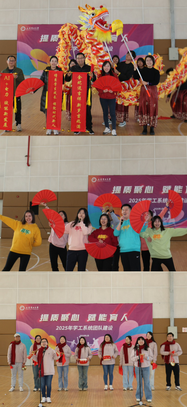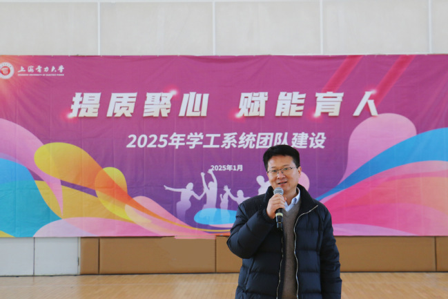為加強我校學生工作隊伍建設,增進學生工作隊伍的凝聚力和戰斗力,提振銳意進取、擔當有為的精神面貌,2025年1月10日下午,我校2025年學工團隊建設活動在臨港校區體育館開展。校黨委副書記、校長顧春華,校黨委副書記、副校長朱克勇出席活動,學生工作部、研究生工作部、團委、各二級學院黨委副書記以及全體專職輔導員等80余名教師參加活動?;顒佑尚F委副書記周長長、學生工作部(處)大學生德育發展中心副主任李雪珂主持。