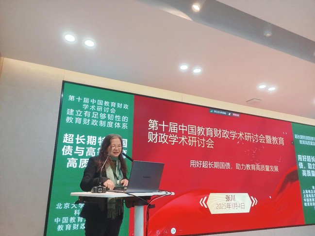 2025年1月3日至4日,第十屆中國教育財政學(xué)術(shù)研討會暨教育財政專委會年會在北京召開,會議的主題為“建立有足夠韌性的教育財政體系”,我校總會計師張川教授應(yīng)邀出席。來自全國人大預(yù)算工委、湖南省教育廳、北京信息科技處、北京大學(xué)、清華大學(xué)、上海交通大學(xué)、上海財經(jīng)大學(xué)、華中科技大學(xué)、電子科技大學(xué)、華南理工大學(xué)、北京科技大學(xué)、德國耶拿大學(xué)等單位的300余人參會。