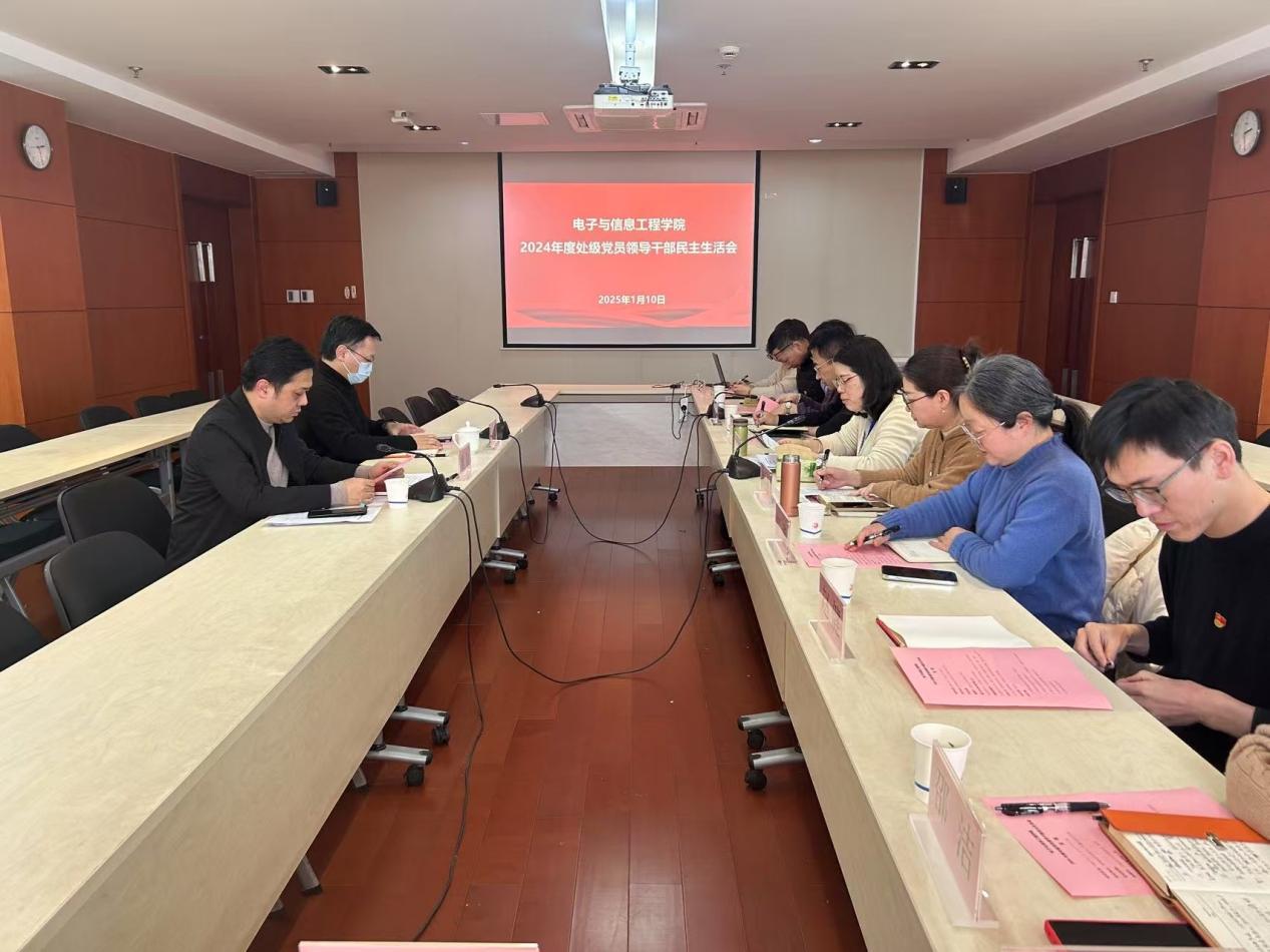 1月10日下午,電子與信息工程學院2024年度處級黨員領導干部民主生活會在楊浦校區九樓五號會議室召開。副校長張波楊蒞臨指導,校第四督導組組長黃俊到會督導。學院黨政領導班子成員、黨委委員、工會主席、辦公室主任、專職組織員、教師代表參會。