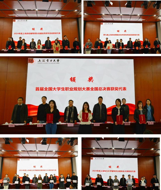 回眸展望,蓄力新程。會議表彰了2024年度全國大學生職業規劃大賽全國總決賽、上海高校輔導員隊伍建設月、第七屆上海高校網絡文化節系列評選活動以及上海電力大學輔導員素質能力大賽、輔導員主題班會大賽的獲獎代表,激勵全校學工同仁在新的一年持續奮勇拼搏、開拓進取。