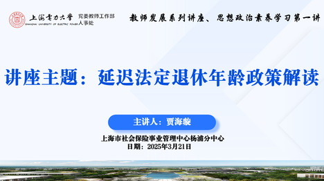 結合學校前期調研與教師需求,我校于3月21日舉辦“延遲法定退休年齡政策解讀”專題講座。講座邀請上海市社會保險事業管理中心楊浦分中心賈海璇老師擔任主講人。我校各二級單位50余名教師代表與學院相關事務工作人員參加。